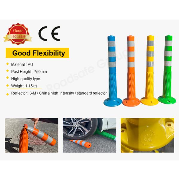 750mm PU Spring Post Orange Warning Post Traffic Bollard Reflective Delineator Images |
